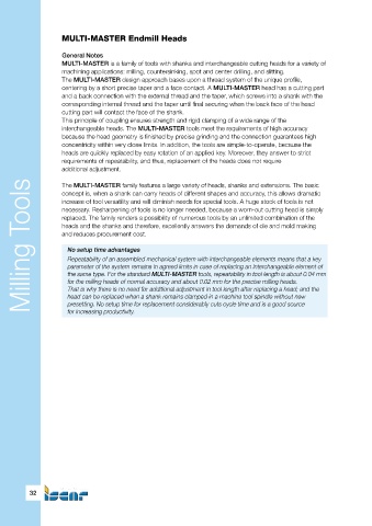 centering by a short precise taper and a face contact. A MULTI-MASTER head has a cutting part