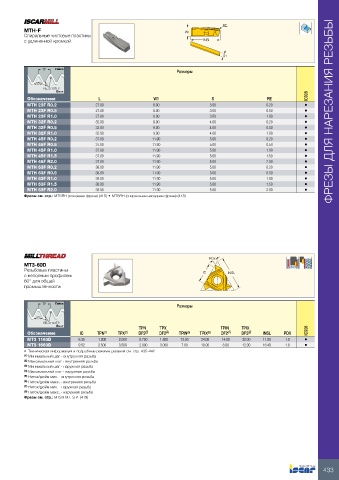 Фрезы см. стр.: MTSRH (концевая фреза) (418) • MTSRH (спиральная насадная фреза) (418)