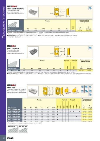 • Должны использоваться вместе с пластинами ADKT 1505PDR. • Руководство по эксплуатации и режимы резания см. стр. 542-547.