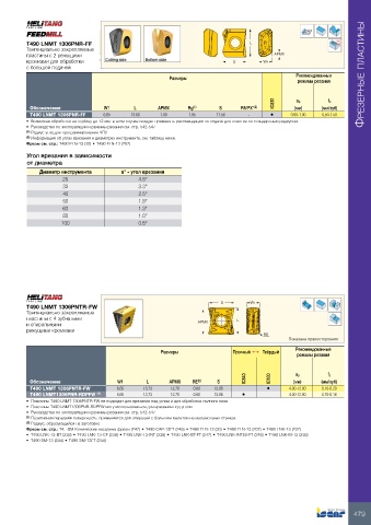 (2) Информация об углах врезания и диаметрах инструмента, см. таблицу ниже.